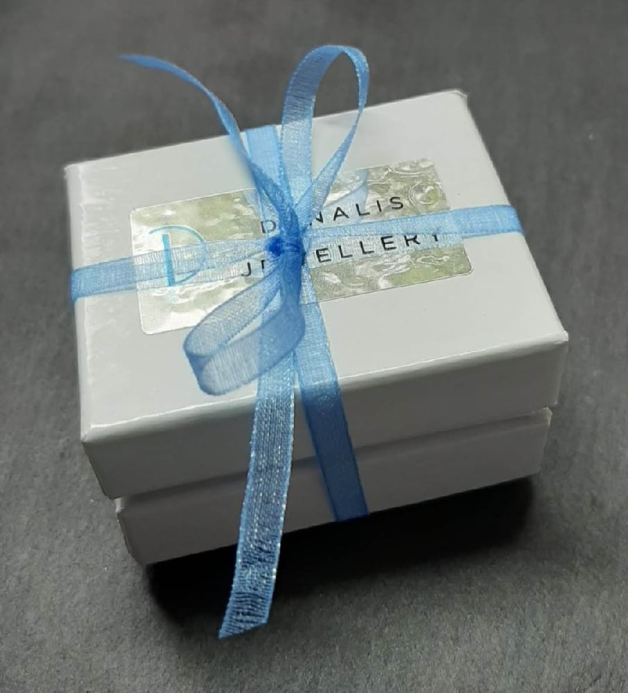 Your jewellery will arrive presented in a white, recycled and recyclable gift box with a white, non-tarnish insert, tied with a turquoise ribbon - ready to gift or keep.