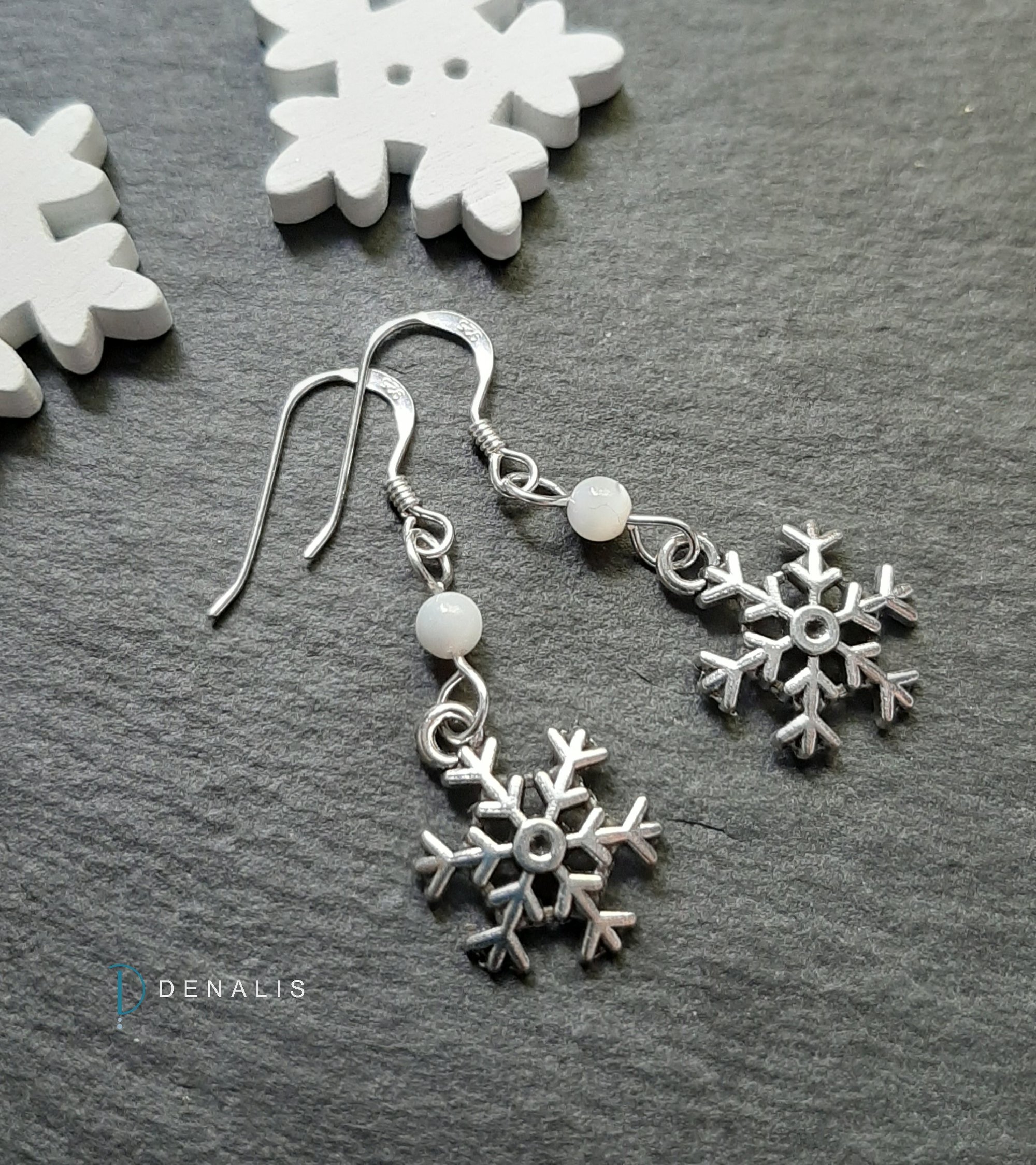 Fun earrings for the festive season made with a selection of glass beads, crystal pearls, Mother of Pearl and silver/gold tone metal beads.