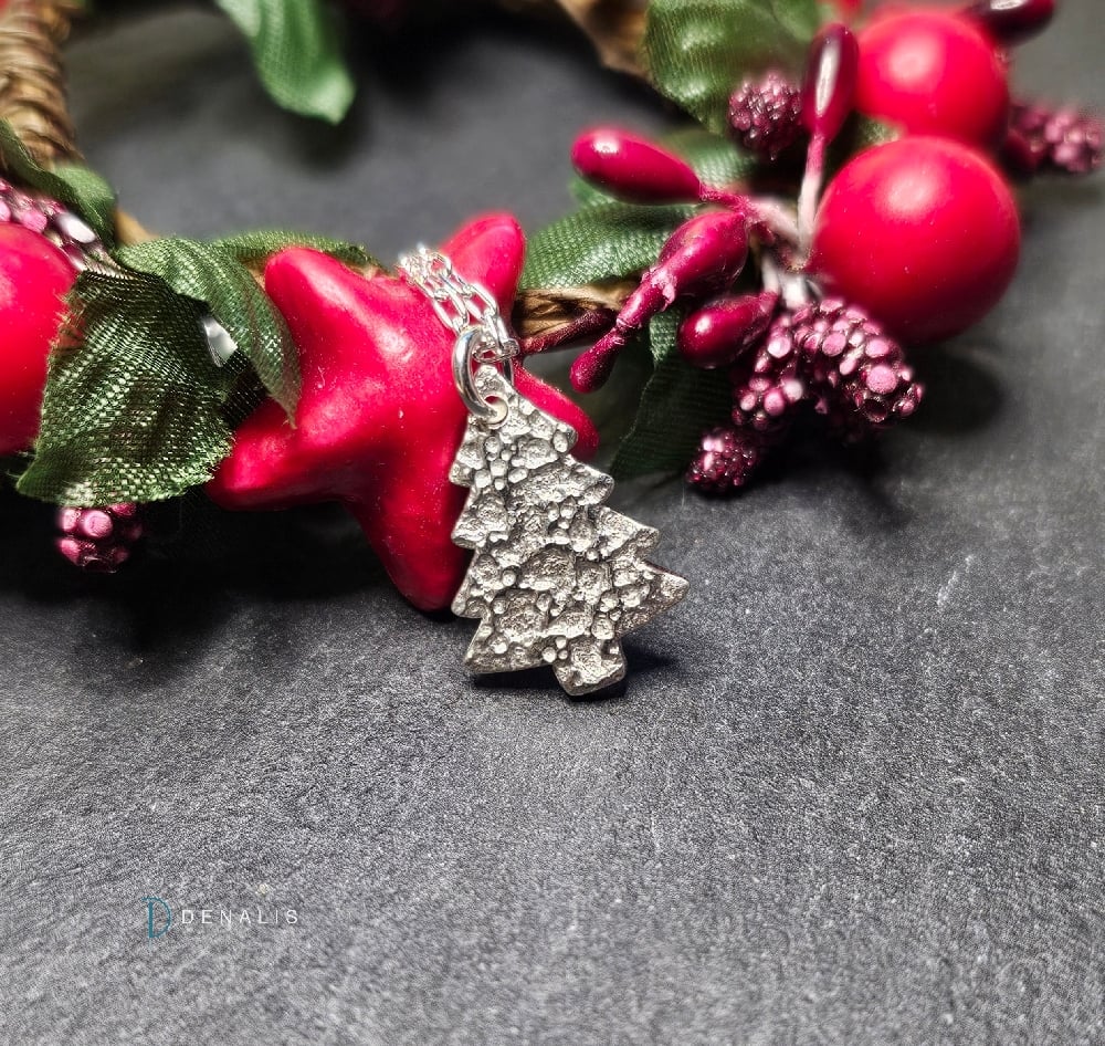 Handcrafted, fine silver, Christmas tree pendant necklaces, bringing a festive sparkle to your everyday style. Each one is individually shaped and textured using eco-friendly silver precious metal clay.