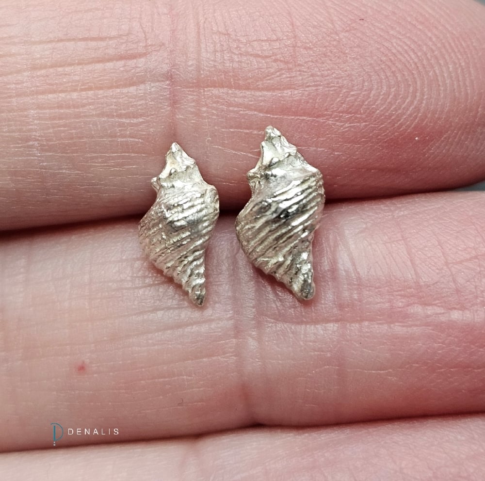 Beautifully detailed, handcrafted fine silver, tiny conch shell stud earrings, made from a mould.
