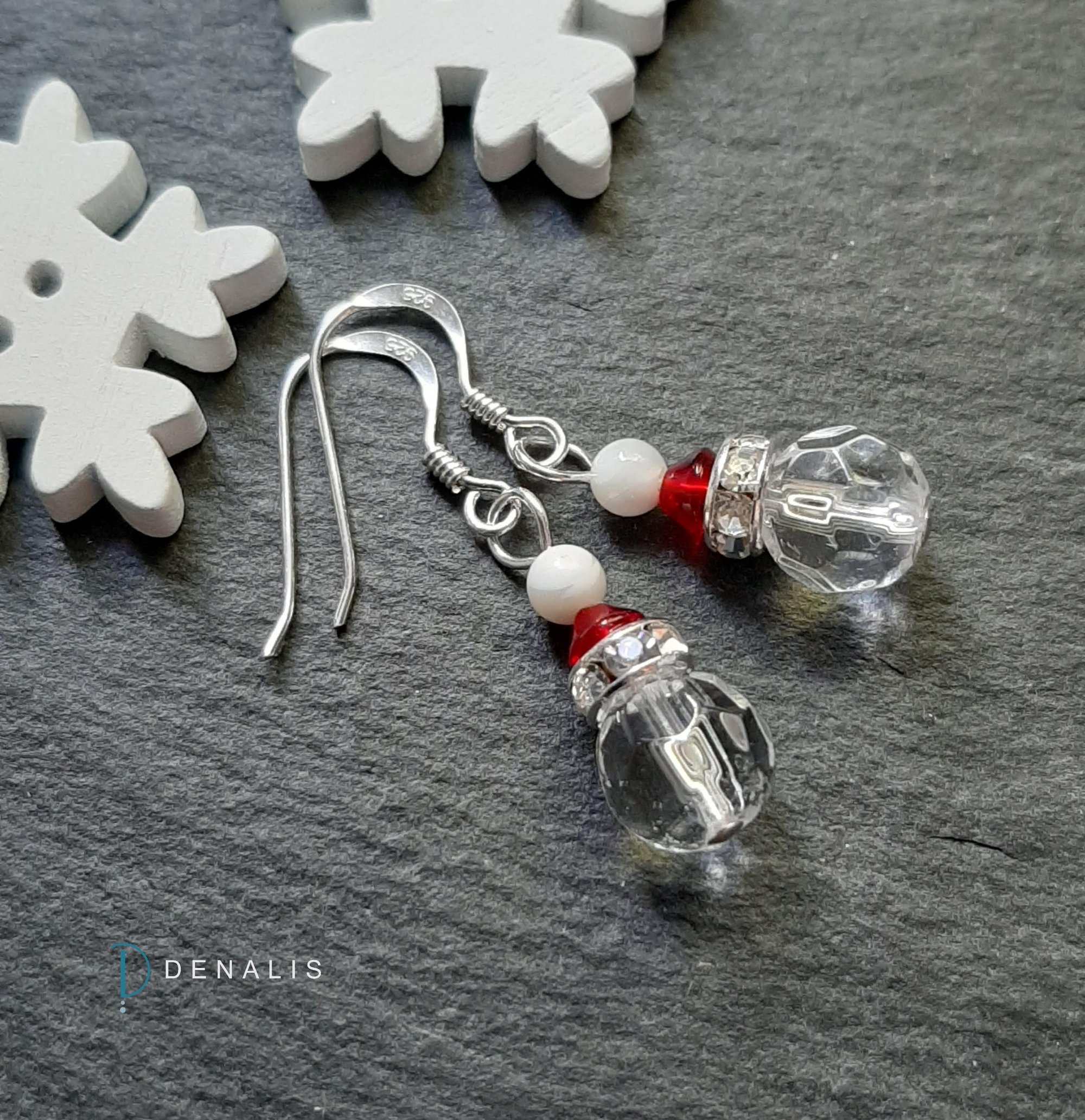 Fun earrings for the festive season made with a selection of faceted glass beads, Mother of Pearl and glass seed beads.