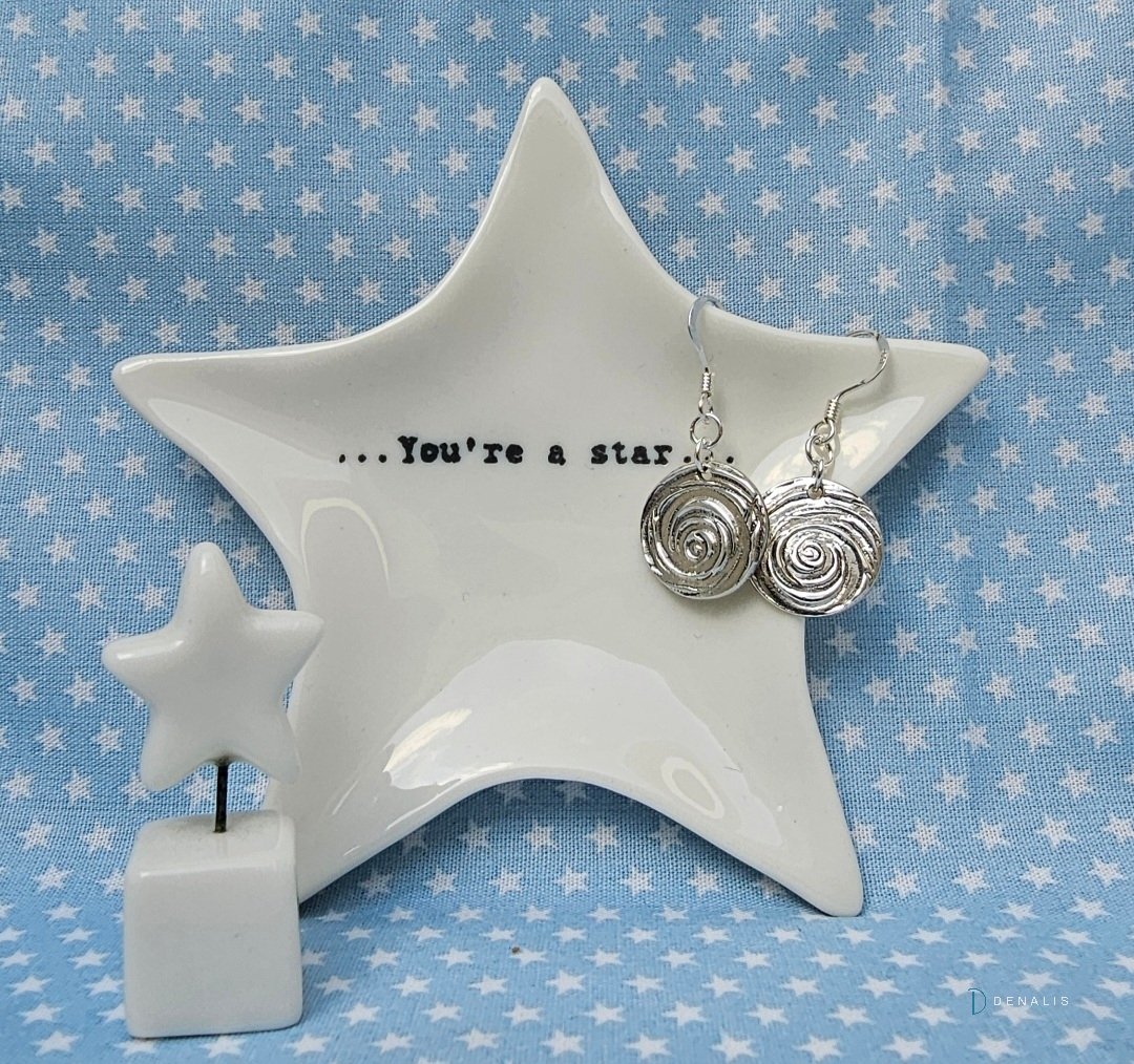 Inspired by Van Gogh’s The Starry Night, these handcrafted fine silver earrings feature a raised, delicate swirl texture on one side, a nod to the movement and mystery of the night sky in the famous painting.